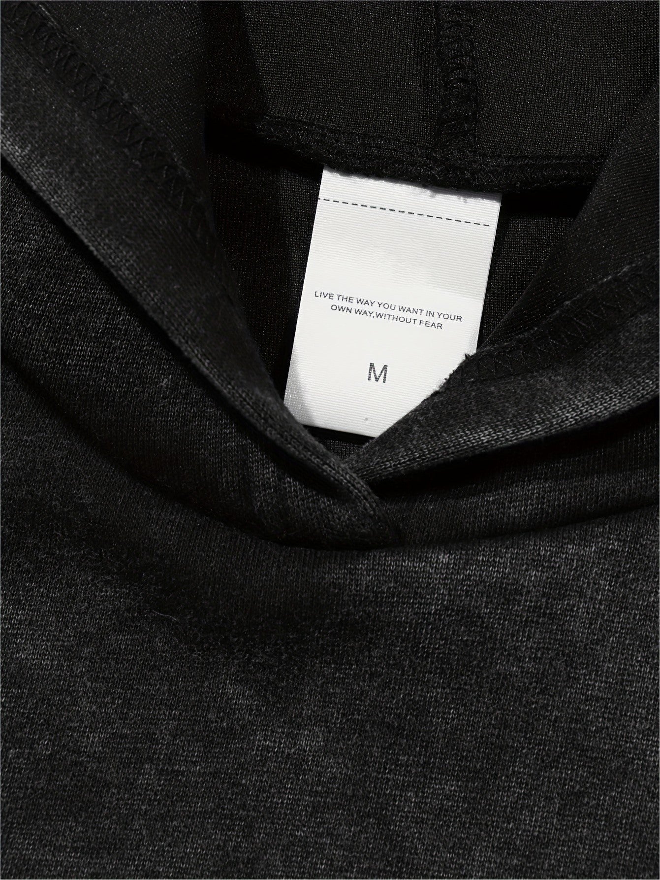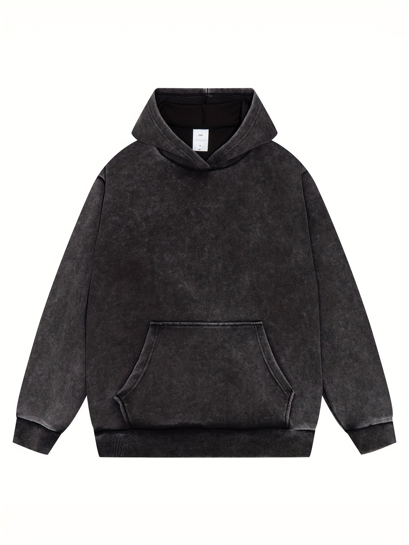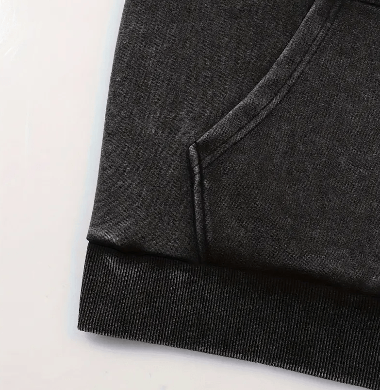 This Vintage Faded Black Hoodie is crafted from a soft and durable cotton blend (30% cotton, 70% polyester) with a slight stretch, ensuring both comfort and long-lasting wear. The hooded collar adds a touch of style and the easy care instructions (machine wash, no dry cleaning necessary) make it a practical choice. The regular fit and knit fabric make this hoodie not only fashionable but also functional.